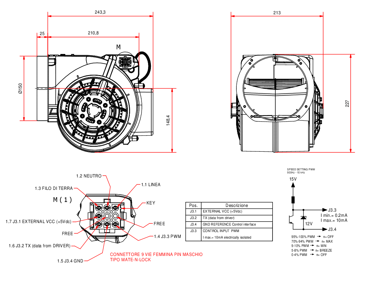 | Connessione ventilatore | Mate-n-lok 9 vie |